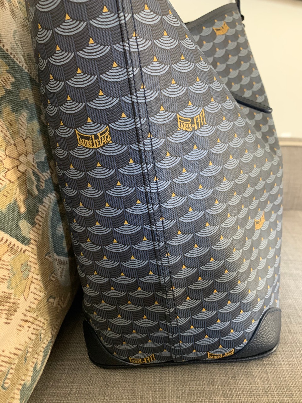 COLOR/SIZE: I did not have to pay an extra price for getting it in navy. The colors are more muted than Goyard, but there is something about the navy with the yellow (I also loved the green) that made it special. There are also 5 sizes to choose from (the closest to the Neverfull size is 37, but I had a tote that size already; a Neverfull MM base shaper does fit both the 32 and the 37).